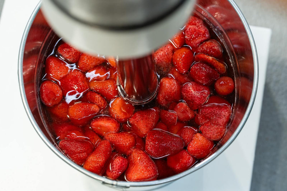 Przytrzymaj obrazek i zobacz jak dzieje się magia! Tak wygląda pierwszy etap tworzenia naszych sorbetów. Świeże owoce, które na końcu zmieniają się w kremowe lody. Chcesz spróbować efektu końcowego?